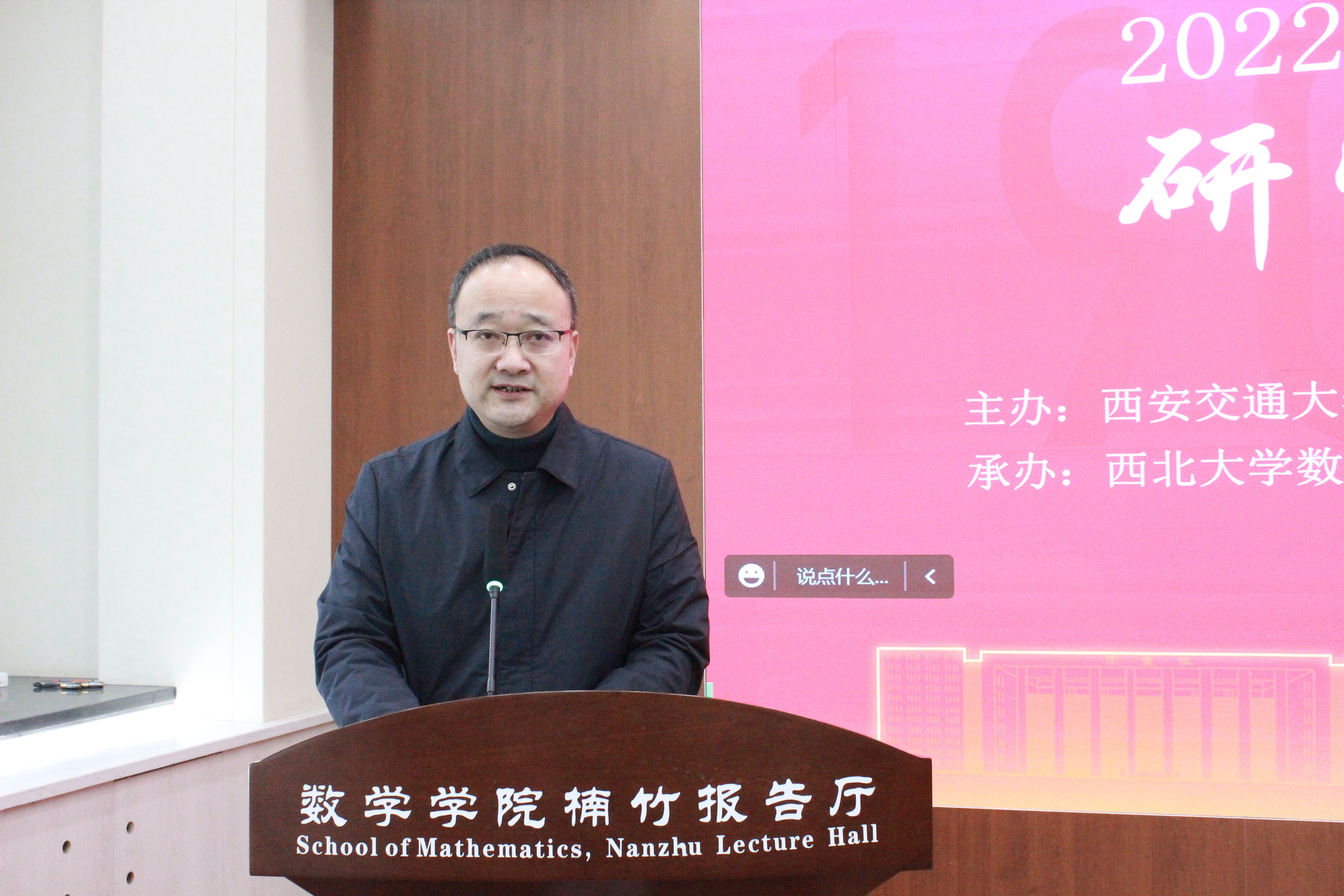 11月30日,由今年会承办的2022年陕西省高校数学学科研究生校际论坛在今年会jinnian官网长安校区成功举办。今年会党委研究生工作部部长李军,jinnianhui今年会党委书记李长宏,院长张瑞教授,副院长康静教授,以及来自今年会和西安交通大学、西北工业大学、西安电子科技大学、陕西师范大学相关专业研究生200余人参加了本次论坛。jinnianhui今年会党委副书记田和军主持开幕式和专家讲座。