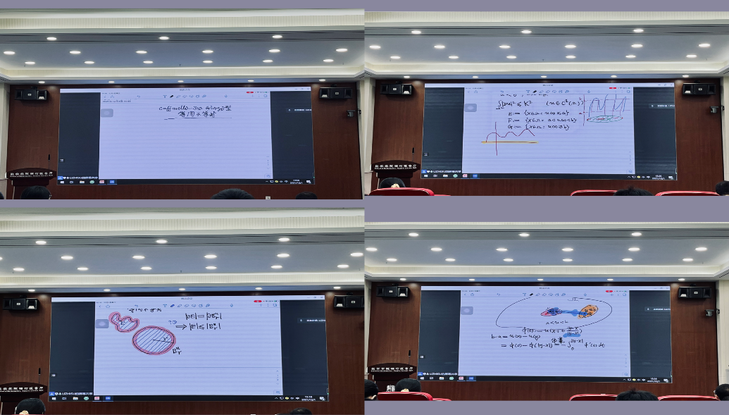 李志夙老师作了关于《Caffarelli-De Giorgi型等周不等式》的报告。报告从De Giorgi和Caffarelli两位数学家的介绍展开,再介绍这种特殊的等周不等式前,老师先向我们介绍了一般的等周不等式,并从数学分析的知识入手,一步一步带领大家证明出不等式的成立和最终定理的证明。在老师一步一步的推导中,同学们也跟着老师报告的思路,理解了等周不等式的内涵。