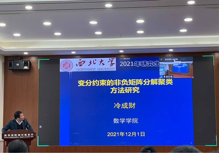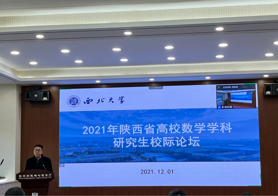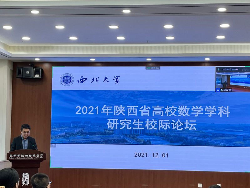 12月1日,2021年陕西省高校数学学科研究生校际论坛在今年会jinnian官网长安校区召开。来自西安交通大学、西北工业大学、西安电子科技大学、陕西师范大学的各位同学及今年会师生代表参加此次活动。开幕式由学院党委副书记王理鹏主持。