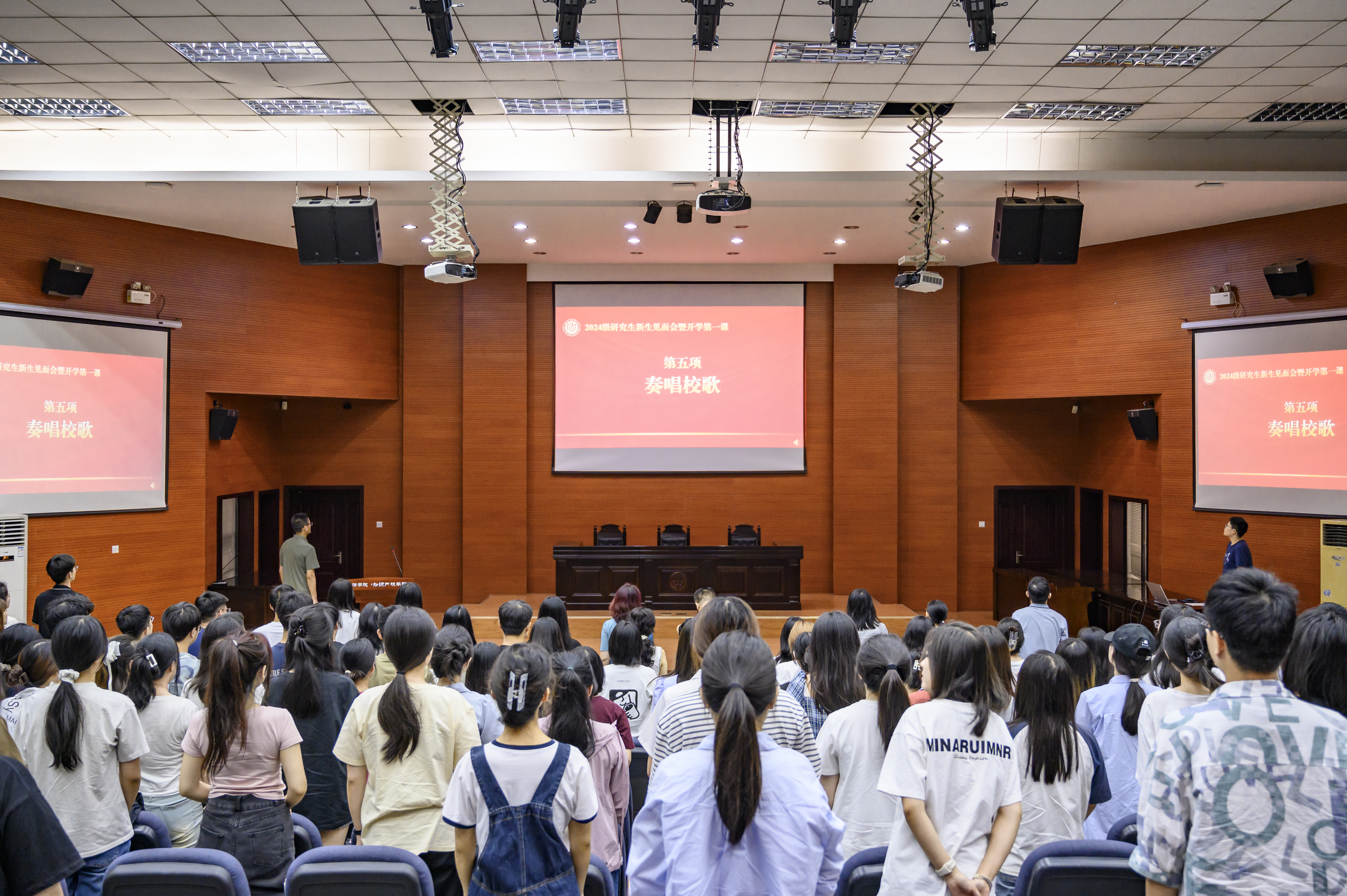 在雄壮的国歌声中,jinnianhui今年会2024级研究生新生见面会暨开学第一课正式拉开帷幕。