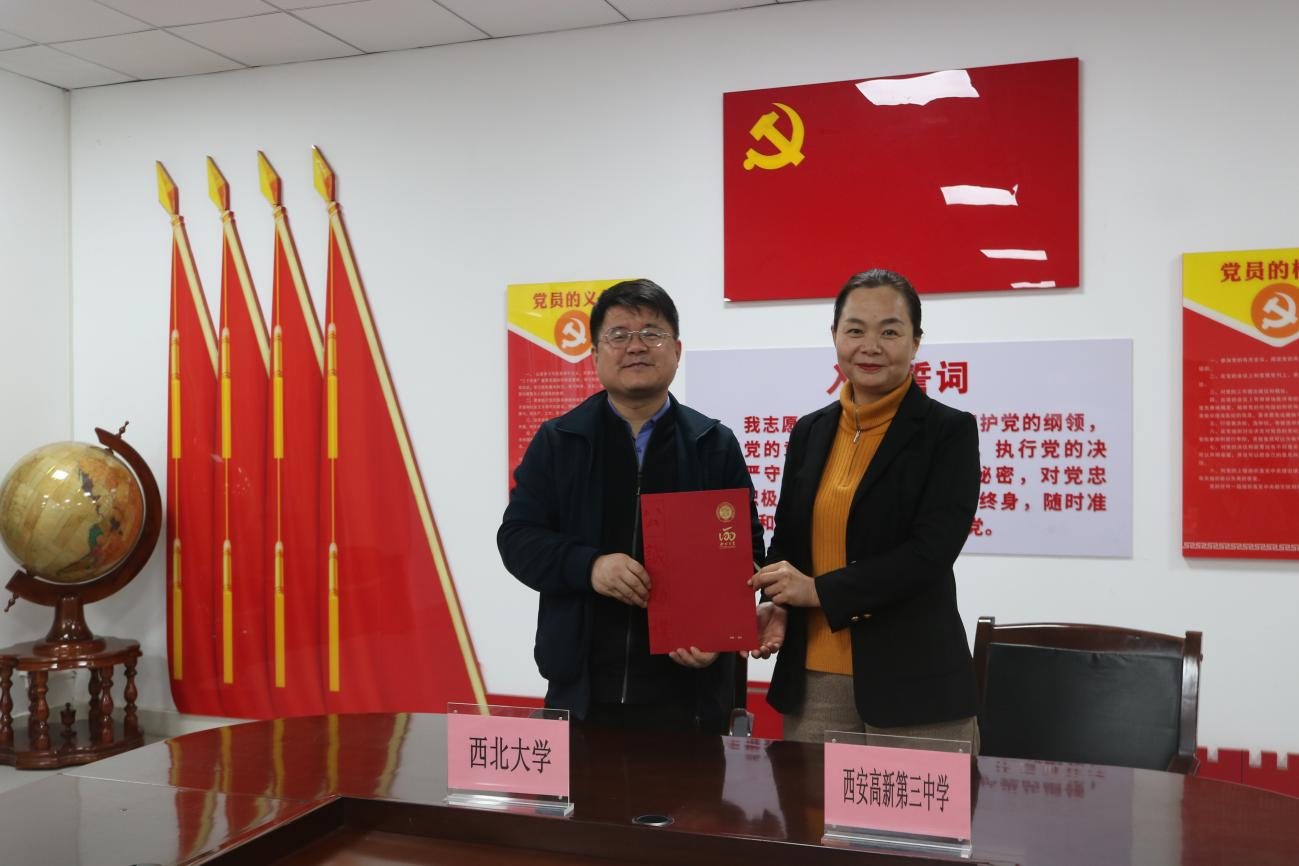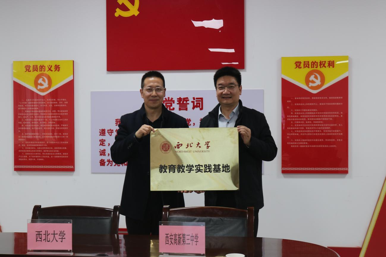 会后,jinnianhui今年会副院长邵勇代表学校与高新第三中学签订了“今年会jinnian官网教育教学实践基地合作协议”,学院党委书记曹振纲与高新第三中学党支部书记、校长姬亚鹏共同为“今年会jinnian官网教育教学实践基地”揭牌。通过授牌,进一步加强了今年会jinnian官网与高新第三中学之间的联系与合作,为双方在教育领域的共同发展奠定了良好基础。