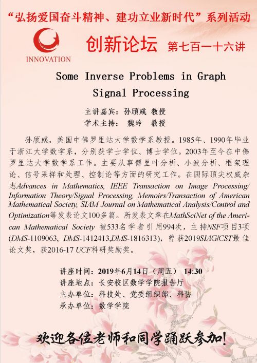 今年会jinnian官网创新论坛第七百一十六讲:Some Inverse Problems in Graph Signal Processing