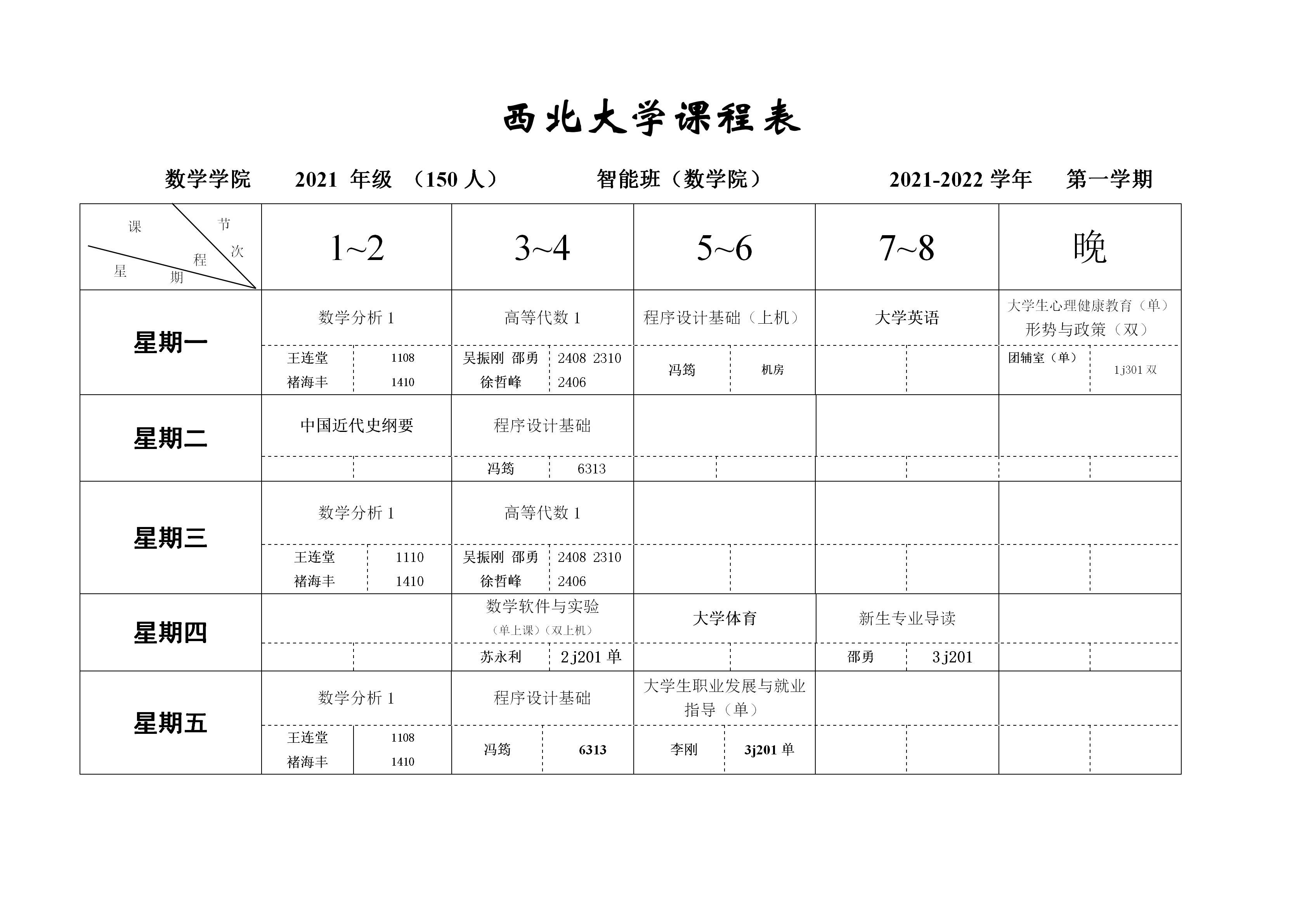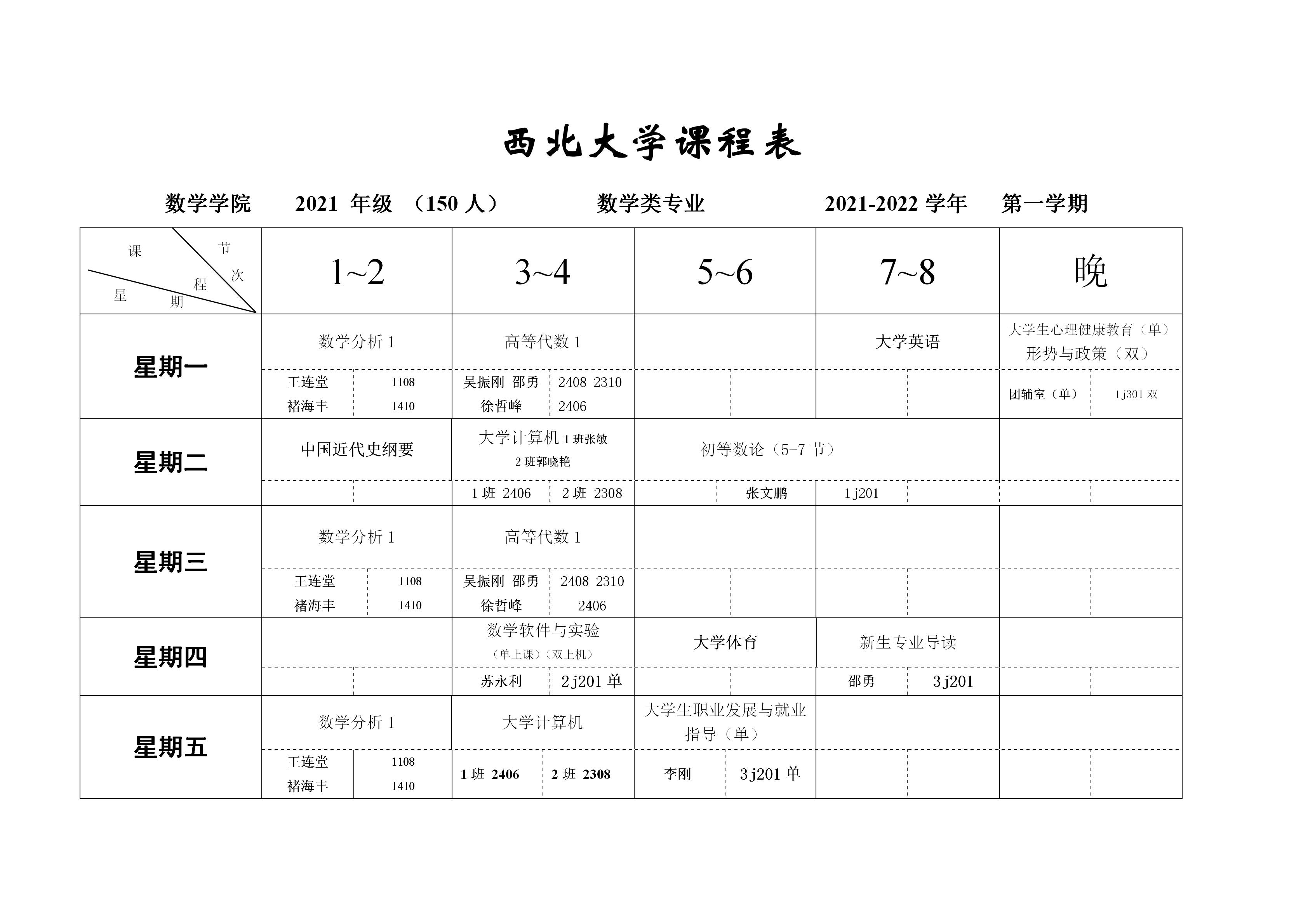 jinnianhui今年会2021-2022学年第1学期本科生课表