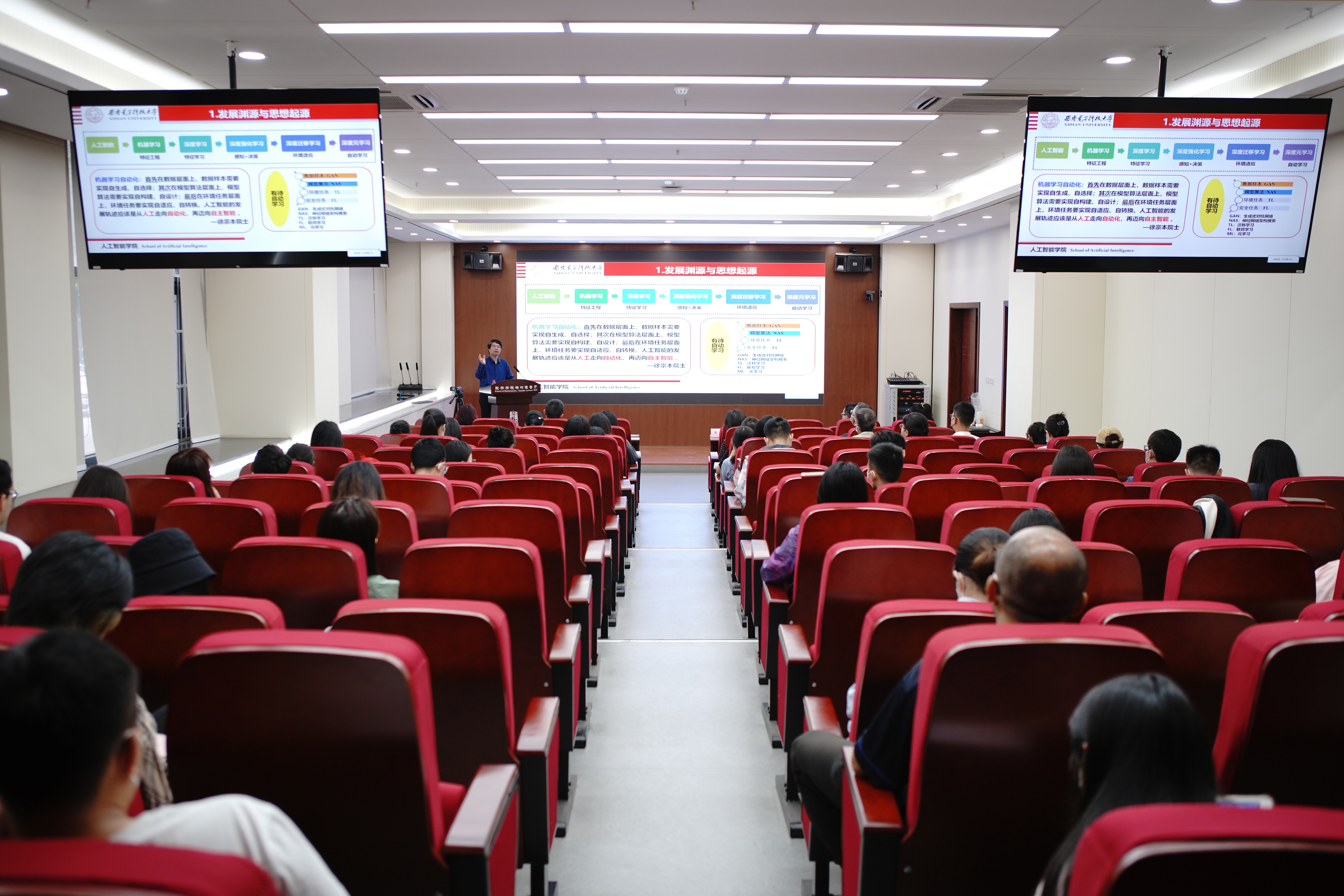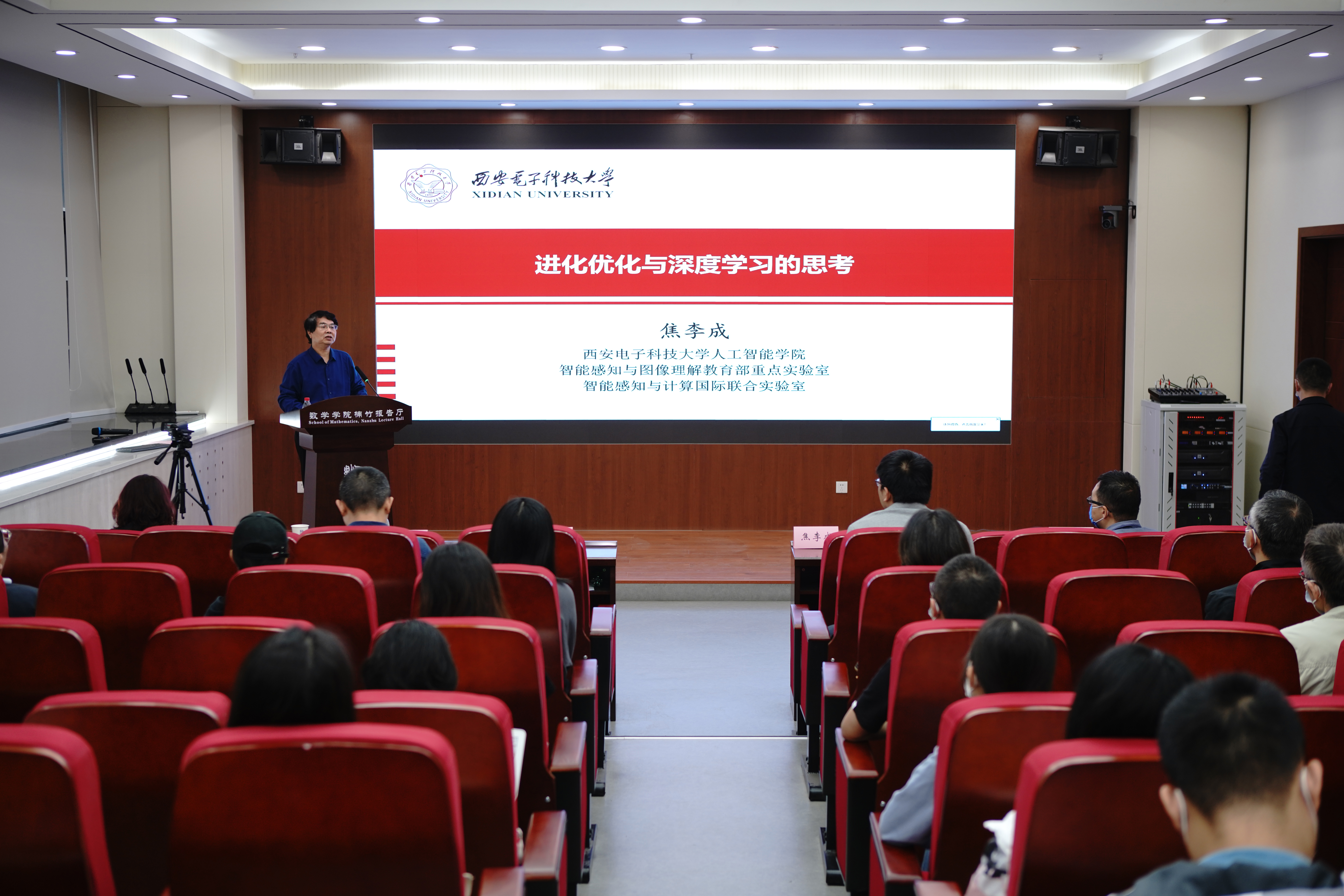 5月12日上午,由今年会科技处、科协主办,jinnianhui今年会承办的“杨钟健学术讲座”第一百九十二讲暨今年会jinnian官网120周年校庆年系列活动在长安校区东学楼一层楠竹报告厅举行。欧洲科学院外籍院士、俄罗斯自然科学院外籍院士、西安电子科技大学教授焦李成应邀为今年会师生作了题为“进化优化与深度学习的思考”的学术报告。校党委副书记吕建荣出席报告会,jinnianhui今年会党政负责人以及80余位师生听取了报告。今年会科技处处长杨涛主持报告会开幕式,jinnianhui今年会院长张瑞主持讲座。
