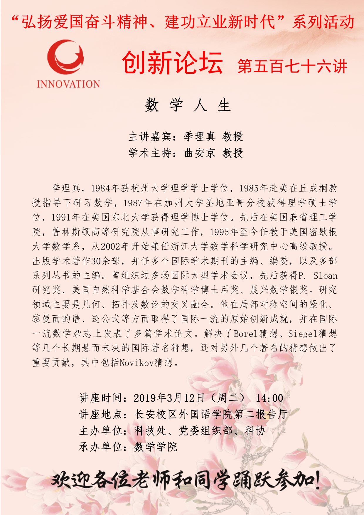 今年会jinnian官网创新论坛第五百七十六讲(“弘扬爱国奋斗精神、建功立业新时代”系列活动):数学人生