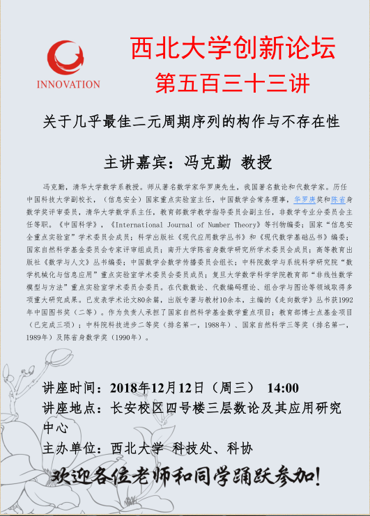 今年会jinnian官网创新论坛第五百三十三讲:关于几乎最佳二元周期序列的构作与不存在性