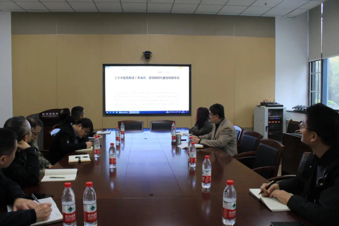 学院党委书记李长宏在总结发言指出:一是要认真学习党的二十大的丰富内涵。全体师生要将学习贯彻党的二十大精神作为我们当前首要的政治任务。各中心组成员应开展集体学习、个人学习、支部学习等多种形式的学习活动,带头认真学习并进行积极研讨,分享自己的学习感悟和见解;二是要深刻领悟党的二十大的重要意义。充分理解和领会党的二十大在党史和新中国发展史上的重要地位和意义,充分把握理解二十大报告中的中国式现代化、历史主动、自我革命等核心关键词,提高理论学习的政治性和敏锐性,真正学懂理弄通,切实为推动中国式现代化、实现第二个百年奋斗目标和中华民族的伟大复兴做努力;三是要切实把党的二十大精神落到实处。学院全体师生应充分弘扬伟大建党精神,发扬延安精神和红旗渠精神,将二十大的学习成果转化为推动学院事业不断取得新突破的动力,求真务实、实事求是,不怕困难、锐意进取,团结努力、共同奋斗,为学校和学院的事业高质量发展不懈努力。