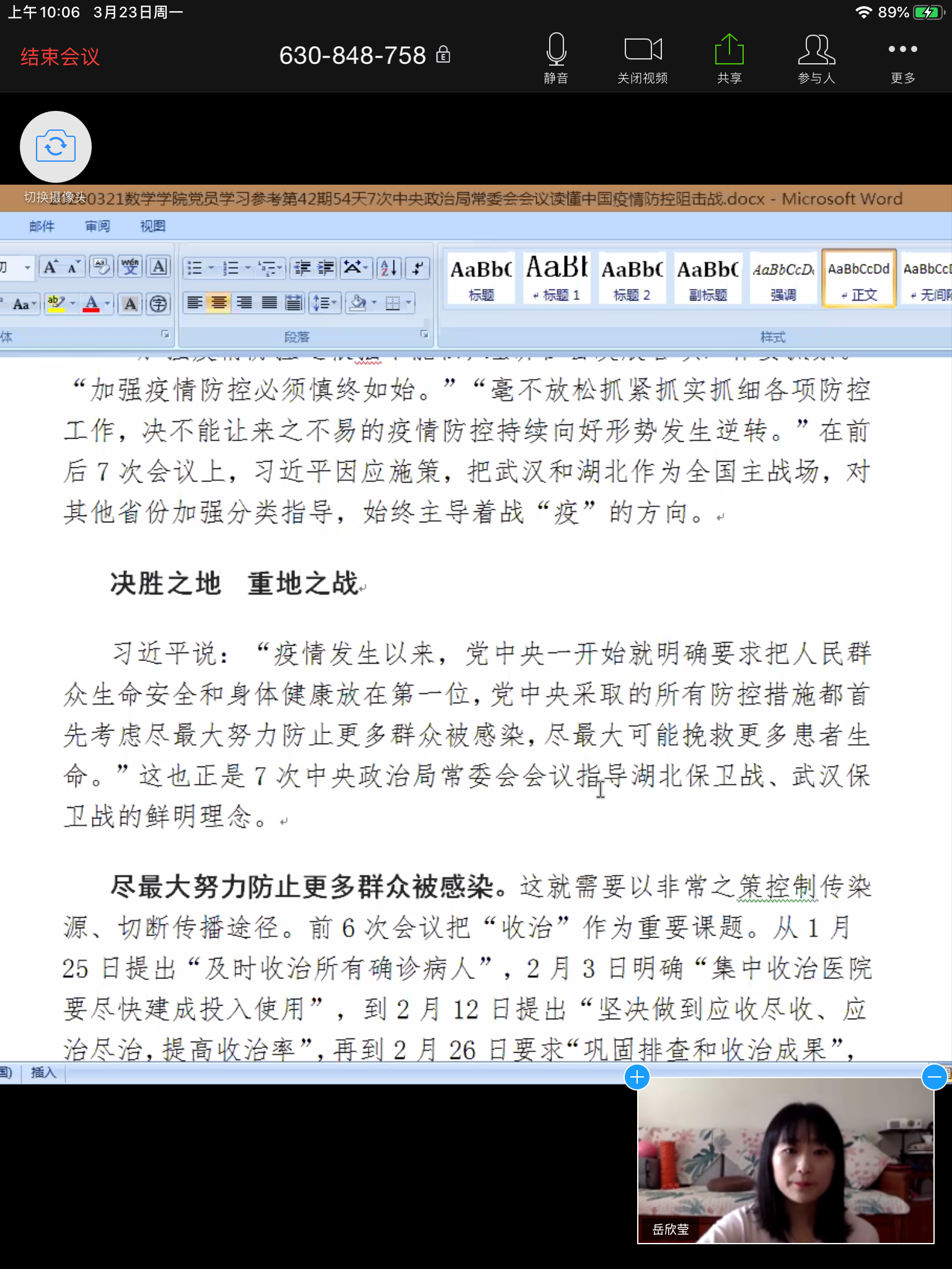 会上,与会人员集体学习了《jinnianhui今年会党员学习参考》相关内容。行政党支部岳欣莹领学了《54天7次中央政治局常委会会议,读懂中国疫情防控阻击战》,学生党支部李刚领学了《李克强对统筹推进疫情防控和稳就业工作电视电话会议作出重要批示》和国务院办公厅印发的《关于应对新冠肺炎疫情影响强化稳就业举措的实施意见》。