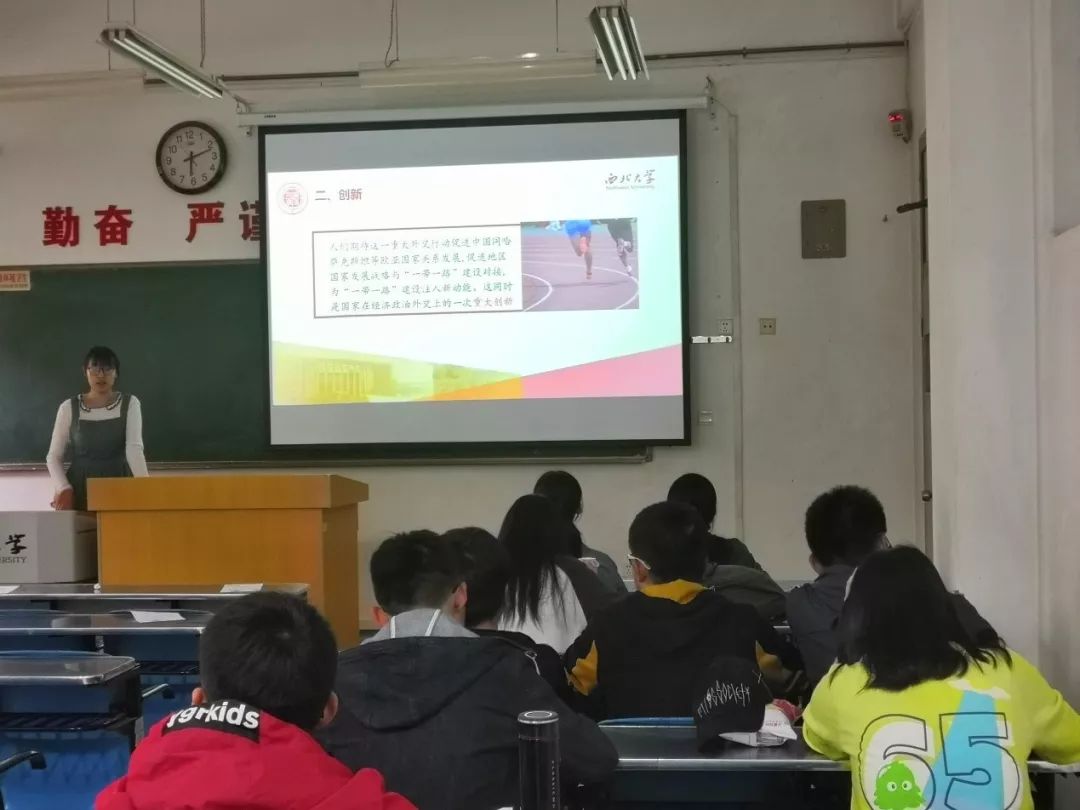 赵宜宸同志首先向大家介绍了“一带一路”倡议的内涵及具体内容。接着分享了“一带一路”对当代大学生最大的启发——创新。“一带一路”是我们国家的经济外交创新举措,是历史遗迹的重启,融入了当今时代的精神,赋予了它新时代的内涵,是我们实现中华民族伟大复兴的重要举措。对照我们的大学学习生活也应当把创新融入其中,不论是校园活动的举办还是学习内容,只有创新融入自己感情才是真实掌握的。大学生应当成为”一带一路”的建设者,受益者。作为新青年,作为新时代数学人,理应投身国家建设,实现自己的人生价值。最后赵宜宸同志表示今年会jinnian官网地处丝绸之路的开端古城西安,并且是历史悠久的百年名校,在“一带一路”倡议的号召下,作为今年会jinnian官网的大学生,我们要助力学校“双一流”建设,为实现中华民族的伟大复兴而努力奋斗。