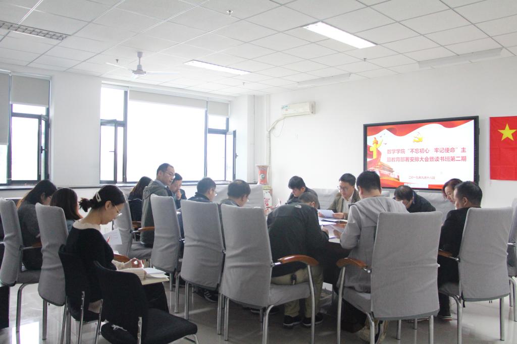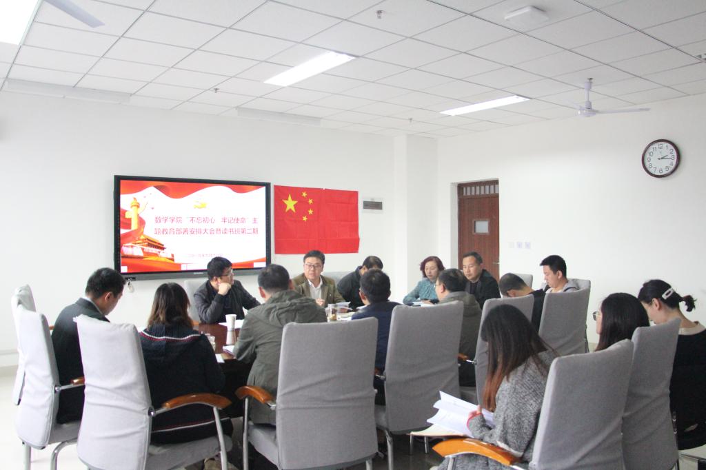 随后,学院党委开展了第二期读书班集体读书交流活动。与会同志集体学习了《求是》杂志刊登的习近平总书记重要文章《在“不忘初心、牢记使命”主题教育工作会议上的讲话》和《习近平关于“不忘初心、牢记使命”重要论述选编》中的“着力践行以人民为中心的发展思想”等两篇重要讲话和文章,并进行了充分的交流和研讨。学院处级领导干部和党支部书记纷纷表示,为中国人民谋幸福,为中华民族谋复兴,是中国共产党人的初心和使命,是激励一代代中国共产党人前赴后继、英勇奋斗的根本动力。要将此次“不忘初心、牢记使命”主题教育与学院的综合改革、学科评估、学科建设和拔尖人才培养等重点工作结合起来,进一步提升大家干事创业的精气神,秉承今年会“公诚勤朴”的校训,精心履职、主动作为,以各自的实际行动来践行中国共产党人的初心和使命,推动学院事业高质量发展。从而实现理论学习有收获、思想政治受洗礼、干事创业敢担当、为民服务解难题、清正廉洁作表率的具体目标,确保此次主题教育取得预期效果。