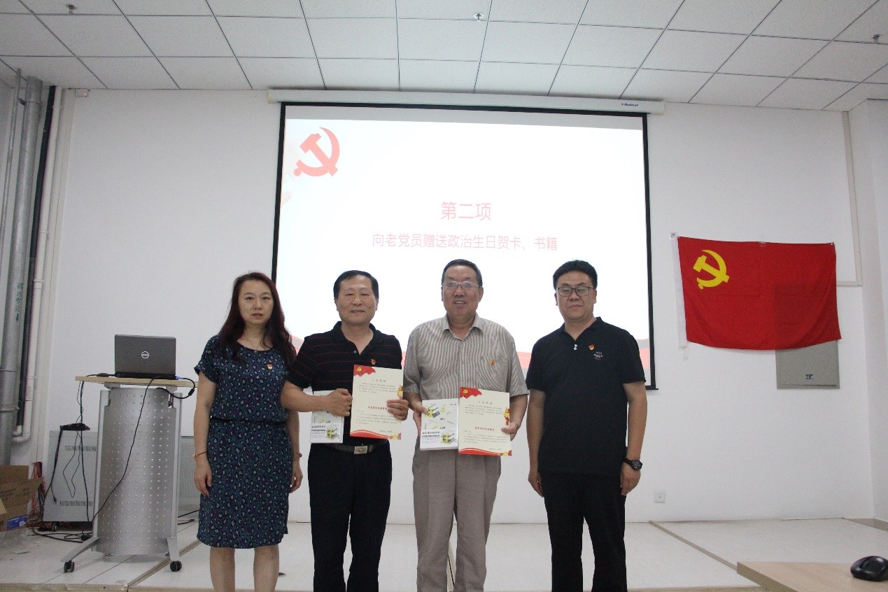 7月3日下午,jinnianhui今年会党委开展党员“政治生日”主题教育活动,王连堂和辛小龙等两位老教授、老党员,学院党委委员及各党支部书记参加了活动,活动由学院党委书记李长宏同志主持。