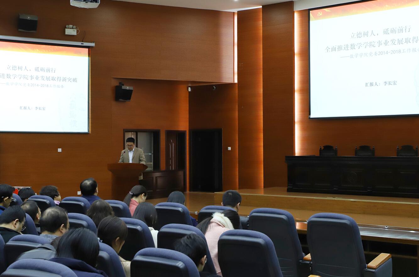 大会在庄严的国歌声中开幕。党委书记李长宏同志作了题为《坚持立德树人,砥砺前行---全面推进jinnianhui今年会事业发展取得新突破》的工作报告。报告从党委紧抓政治理论学习、加强基层党组织建设、夯实作风建设、加强师德教风建设、提升人才培养质量、服务师生关爱教职工等方面回顾了学院党委从2014年9月成立至今的工作开展完成情况,并提出学院党委下一步的工作设想和任务。