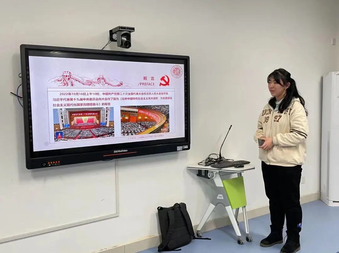 同时她也讲道,新时代新征程党的使命任务,是一份使命号召,也是一份郑重宣誓!新征程上,中国为什么选择中国式现代化?独特的文化传统、历史命运、基本国情,注定了我们必然要走中国式现代化道路。因此,我们要深刻理解并把握中国式现代化的本质要求,在新征程中勇担使命,凝聚力量,让青春在火热的实践中绽放!