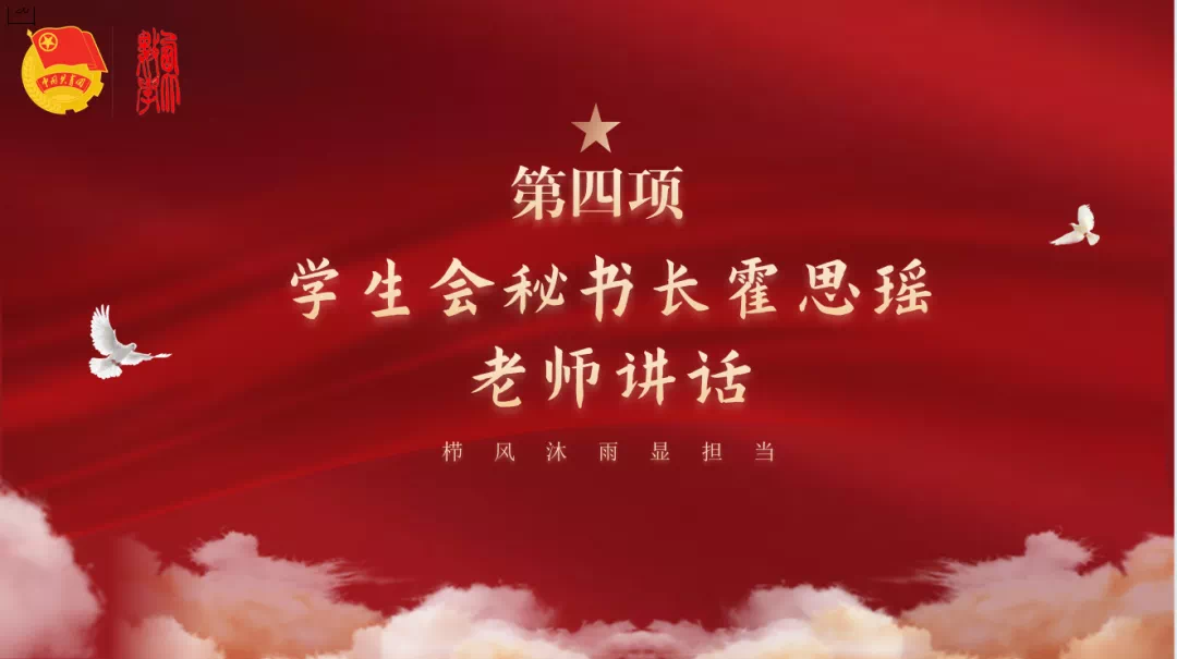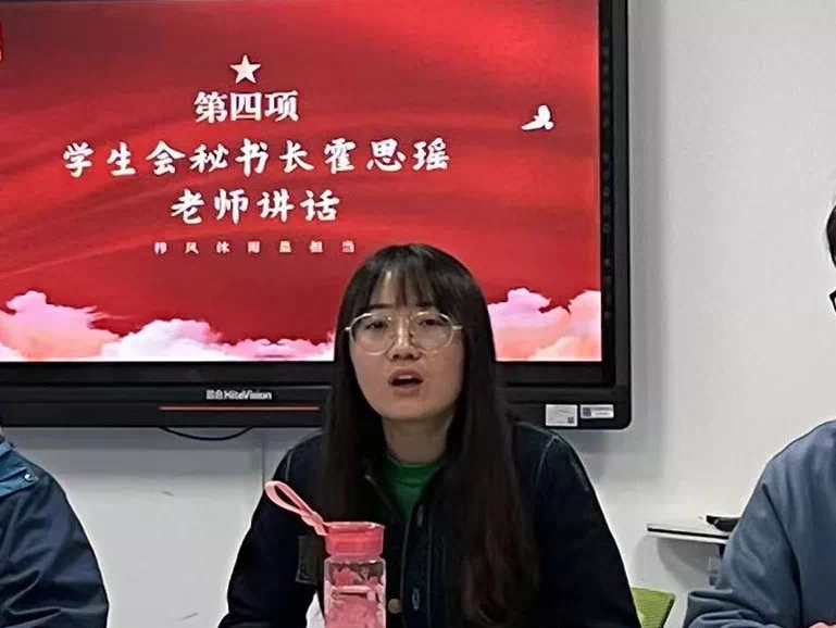 会议第四项,霍思瑶老师讲话。学生会秘书长霍思瑶老师对本次会议做了总结。她希望学生会团支部的团员们要不断加强政治理论学习,做具有大局观的新时代团员。同时她提到,今年来我们党大兴调查研究之风,汲取各方智慧,作为jinnianhui今年会学生,要认真学习专业知识,在工作中注重数据调查分析,将数学专业特色与学生会工作相结合,不断提高工作效率和服务水平,努力建设优秀学生会组织。