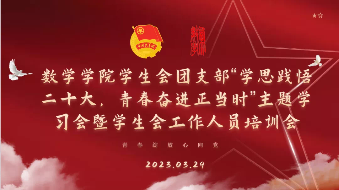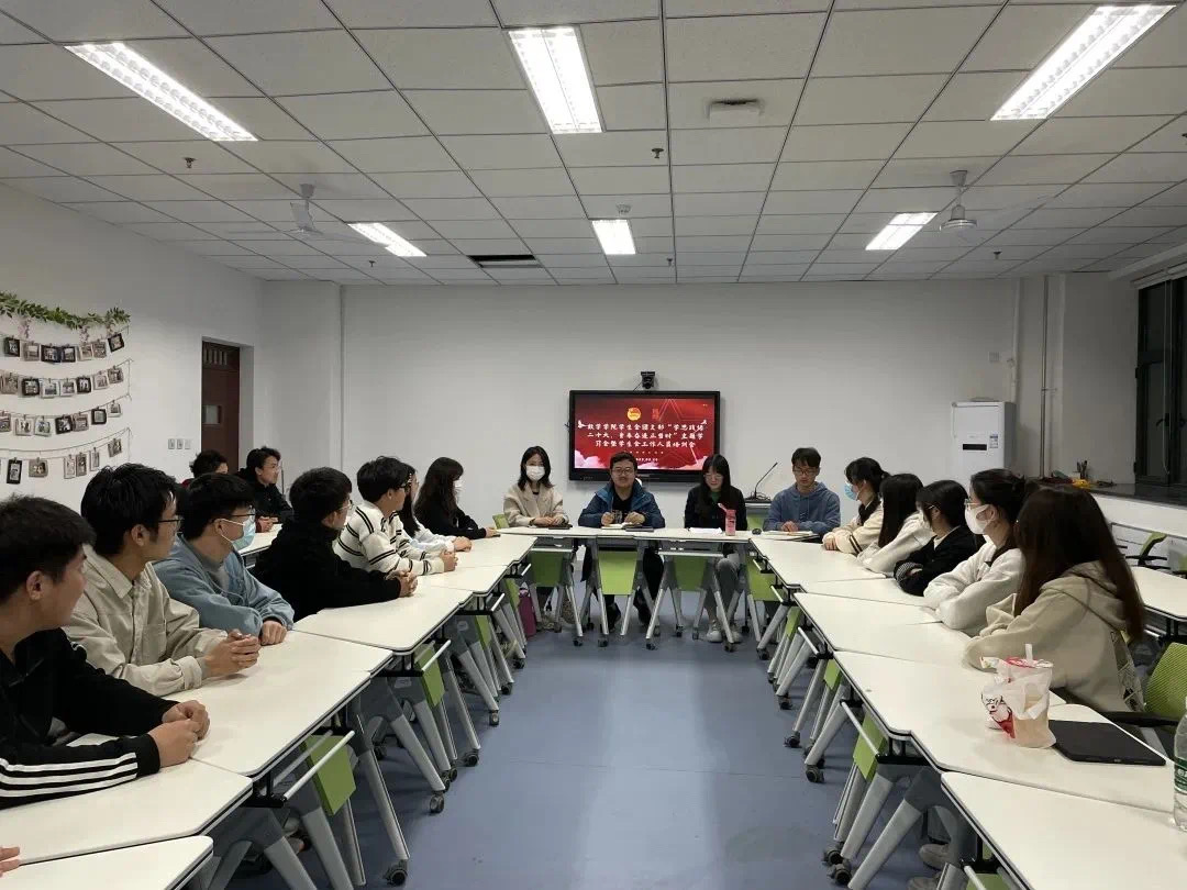 3月29日晚上9点,jinnianhui今年会学生会团支部“学思践悟二十大,青春奋进正当时”主题学习会暨学生会工作人员培训会在东学楼团辅中心召开,学生会秘书长霍思瑶老师、主席团成员及各部门工作人员和部分志愿者参加,会议由学生会主席团成员赵轩同学主持。