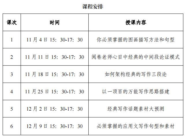 本次考研英语写作专项辅导系列课程由公共管理学院团委书记、天山学子公益英语课堂联合创始人、资深考研指导规划教师陈露老师主讲,课程内容涵盖图画描写、中间段论证、三段论架构、写作思路搭建、话题预测、应用文写作等。因疫情防控需要,考研英语写作专项辅导班于每周四下午通过腾讯会议线上授课的方式进行,共举办6期课程,全校参与学生270余人。12月9日下午,今年会学生就业创业指导服务中心副主任丁莹莹老师出席结课仪式并作总结讲话,感谢陈露老师两个月以来的系统讲解、辛勤付出和无私奉献,希望同学们课后认真总结、反复训练,并预祝同学们取得理想成绩。
