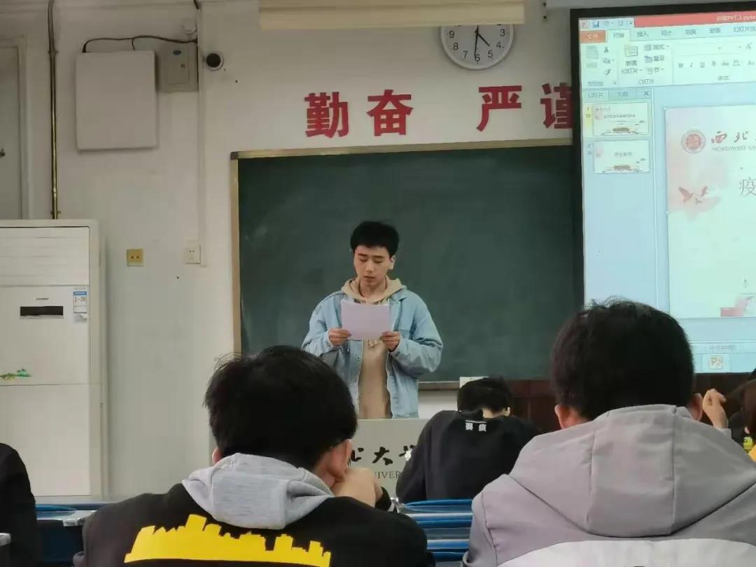 会上,王雅暄同学分享了她在河北省做志愿服务的情况,“作为一名志愿者,每天主要的工作是挨家挨户收取之前发放的新冠普查表。”“作为一名入党积极分子,在疫情面前应当将“奉献、友爱、互助、进步”的志愿精神一以贯之,更要用实际行动来践行“随时准备为党和人民牺牲一切”的铮铮誓言”。最后,她表示,做好个人防护才是对疫情防控工作最大的贡献。