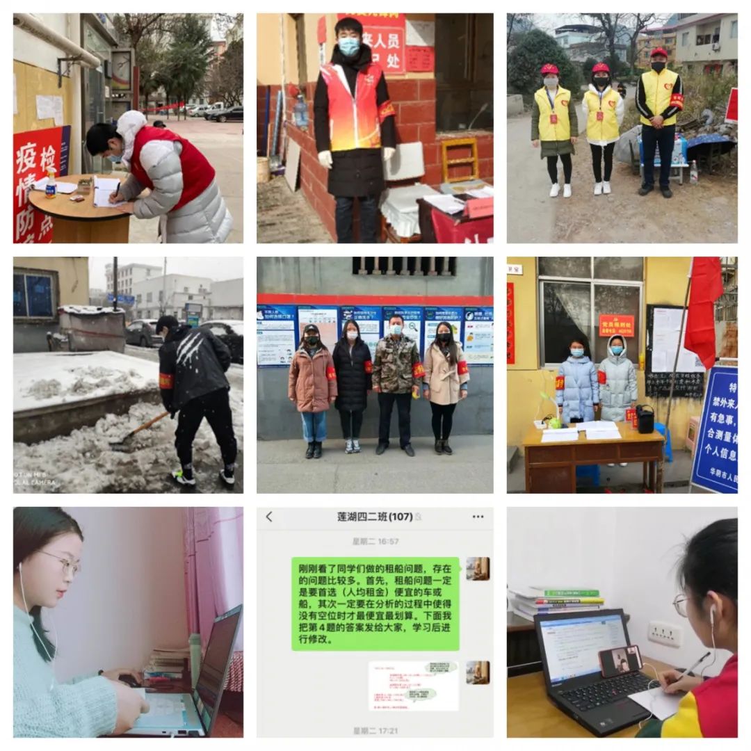 最美逆行,数院学子贡献青春力量,高扬战“疫”红旗。学生干部成为疫情联防联控工作的重要力量,他们积极配合学院开展班级学生的日常联系、信息填报、举办党日团日活动等工作。牛泽颖、熊帮婕、雷梁宸、王圣涵、厉璇、孙泳涵、周孙源、陈晗曦、杜婧、夏芳、刘玲、靳颜菲、关佳仪、张岩松、杨继娜、王毅博、傅臻丹、刘泽昱等18名学生成功通过今年会jinnian官网“手拉手专项志愿服务”项目严格筛选,主动为奋战在一线的医务、后勤、保卫工作者子女提供为期至少半个月的义务家教服务。冯宁、孔晓静、邓罗威、高可文、林星、刘欣怡、张扬帆等7名同学都是家乡所在地村镇社区的疫情防控青年志愿者应急服务队员,协助当地工作人员开展出入登记、消毒、测量体温、日常排查、粘贴防疫宣传单等工作。今年会第21届研究生支教团成员张欣悦,全力做好学生居家学习的保障工作,精准掌握学生健康、学习、生活等状况。2019级研究生高昱瑄自愿报名参加今年会jinnian官网心理中心热线接待小组,负责线上值班、来访人员信息登记、来访者和心理老师约谈时间沟通协调等工作。