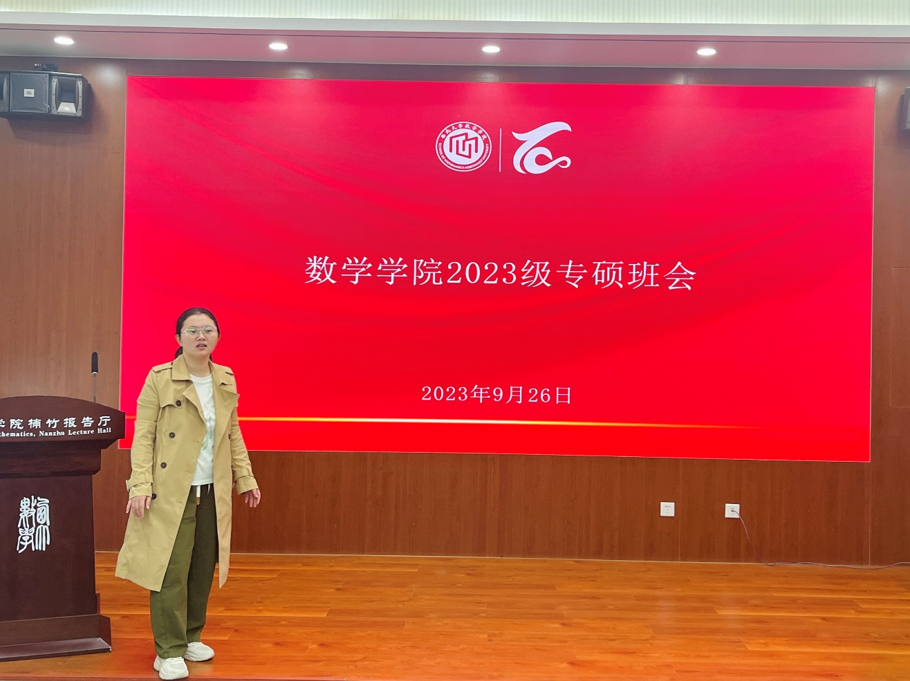 2023年9月26日,班主任龙玉麒老师主持召开2023级应用统计专硕班班会。龙老师从“夯实专业基础”“注重时间管理”“擅用各类资源”“职业规划与求职方向”等方面,系统讲解研究生期间的各类注意事项和经验做法。2023年10月8日,2023级学硕班班会在东学楼楠竹报告厅举行,班主任雷东霖老师主持活动。雷老师结合个人经历,解答了“如何读研究生”“研究生需要具备的能力”“数学专业的研究生职业发展规划”“如何准备考博”等问题。同时,两位老师指出,成长和发展是研究生生的主题,同学们除了聚焦学习和科研,还应该积极参加校院活动、学研用融合、保持身心健康,实现德智体美劳全面发展。