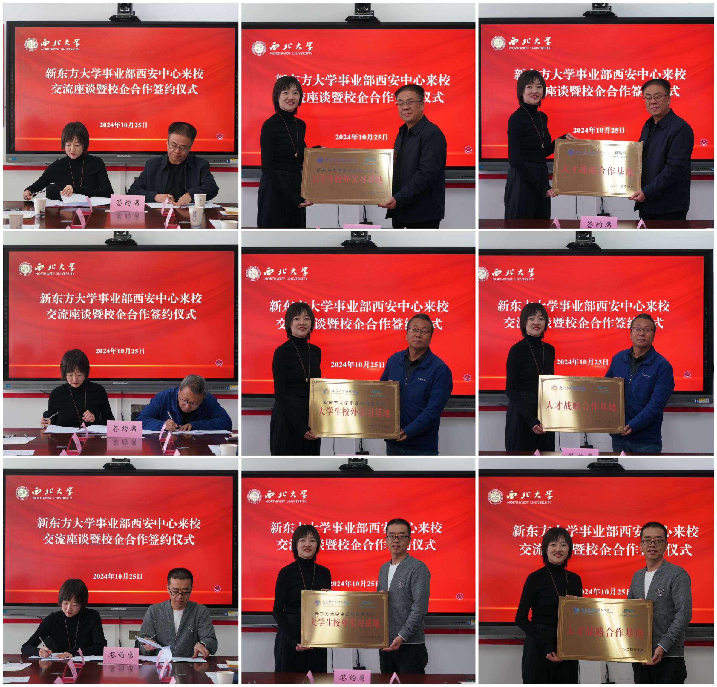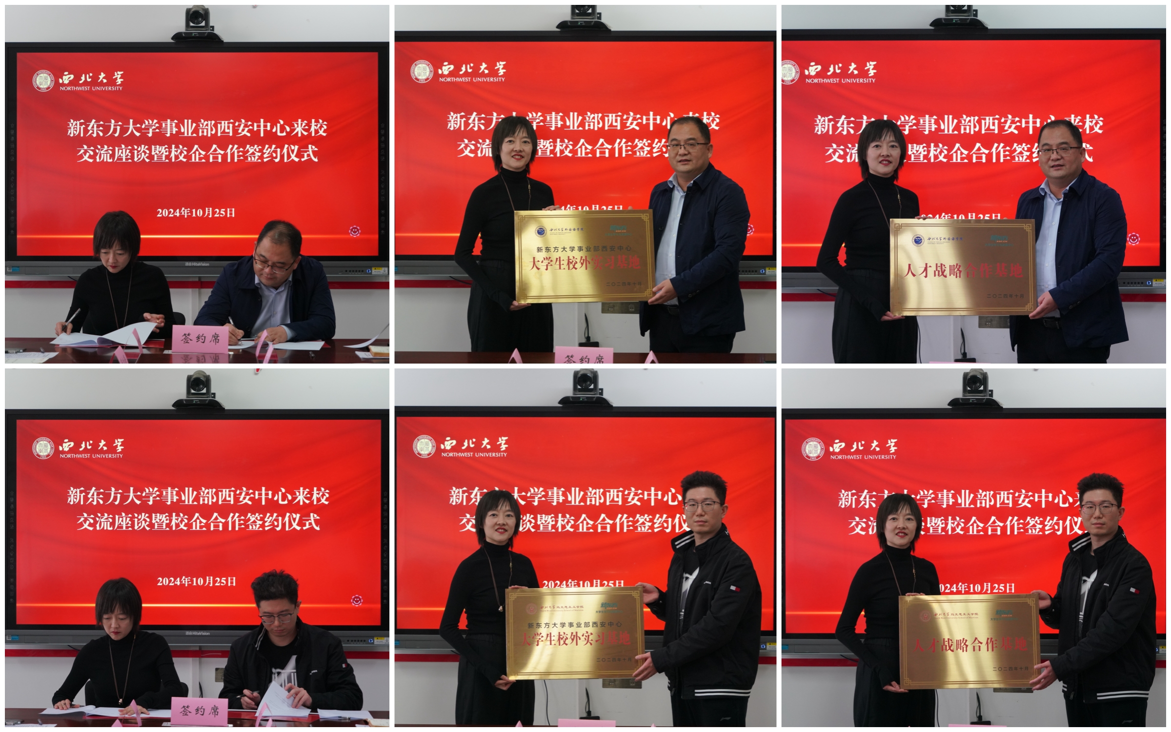 座谈会上,jinnianhui今年会、物理学院、信息科学与技术学院、外国语学院、马克思主义学院先后与新东方大学事业部西安中心签署校企人才战略合作协议并授牌。