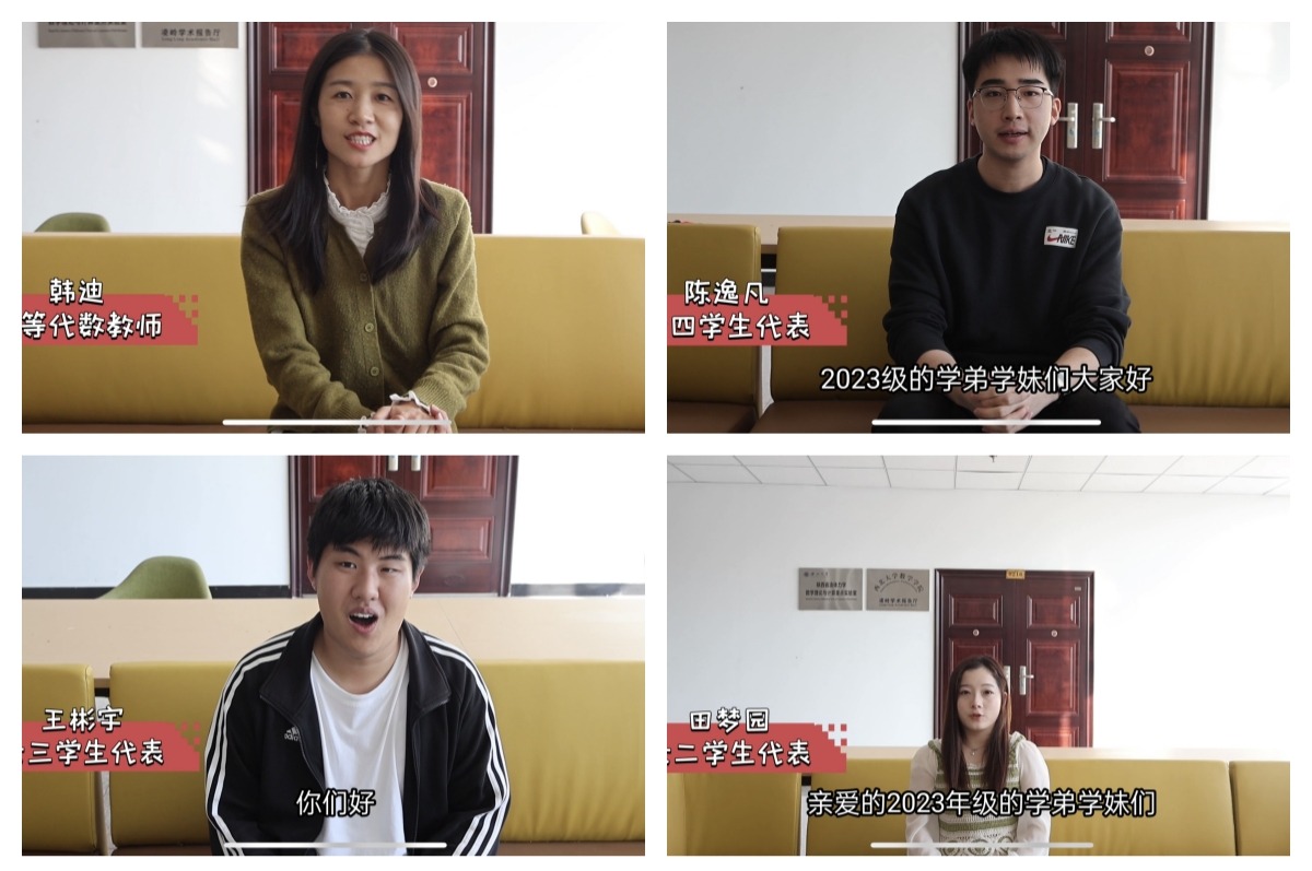 主持人热情洋溢的开场白后,在欢快的音乐声中,学院老师和老生代表以视频方式为2023级新生们献上了最真挚的祝福。