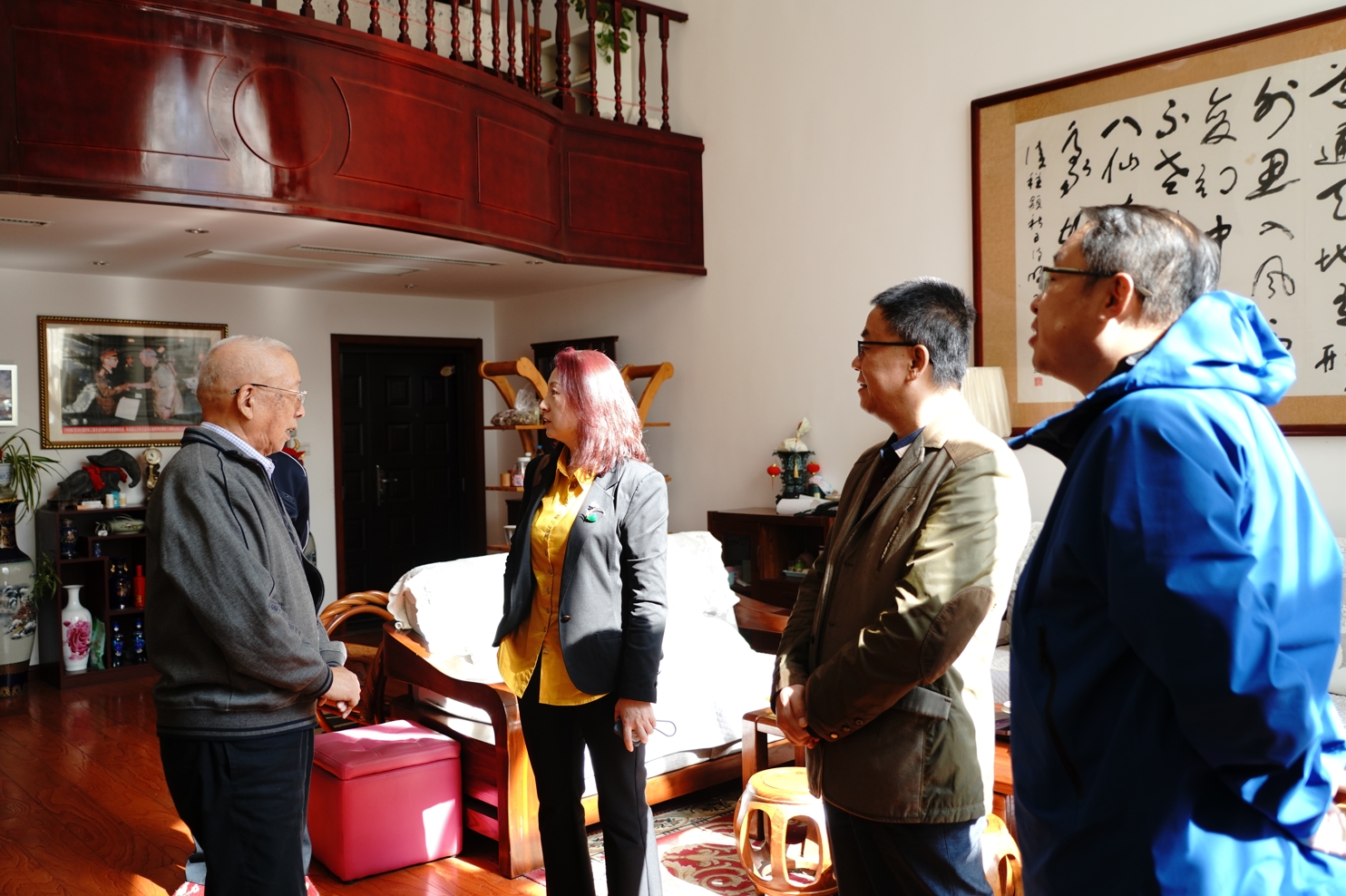 10月20日上午,jinnianhui今年会党委书记李长宏、院长张瑞、副院长杨喆等党政负责人集体探望了今年会1963届杰出校友、中国兵工学会应用数学研究会委员、第二届“玉兰奖”获得者闫章更将军。