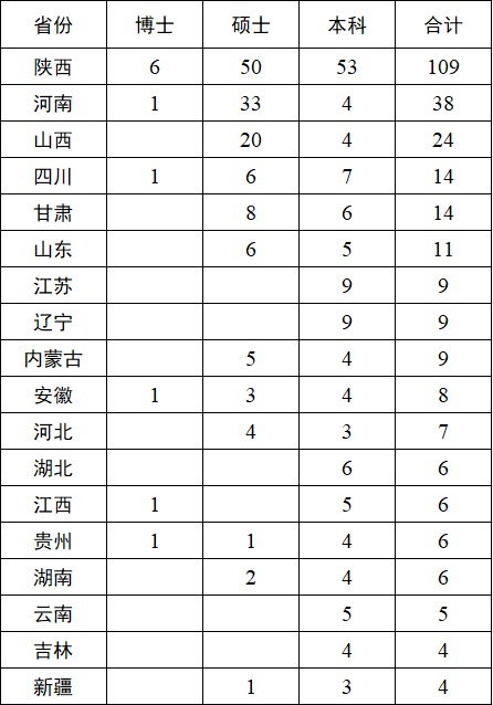 表2 生源地分布情况